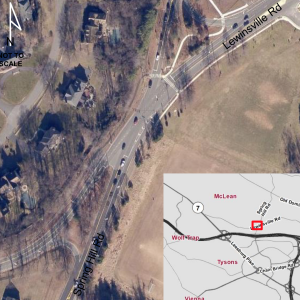 Currently, there is only one west-bound bike lane on Lewinsville Road that runs up to the intersection where, as is so common, there are no good connections to anything other than inadequate sidewalks or narrow paved trails. The inadequate connections, heavy traffic, high speeds on Lewinsville Road’s wide lanes east of the intersection, and poor sight lines on Spring Hill Road’s narrow and curvey course undoubtedly discourage many riders. Even during non-rush hour periods, pedestrians and bicyclists trying to cross the intersection’s wide footprint find themselves at serious risk as frustrated motorists rush through the intersection as quickly as they can.