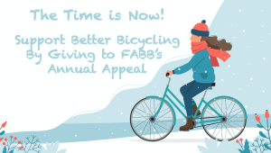 We have chosen the theme “The Time is Now” for our year-end annual appeal, which starts on November 29, #Giving Tuesday, because we believe there has never been a better time to ride a bike to improve our communities’ health, environment, and economy while also helping to save the planet.