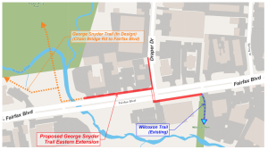 Now is the time to offer your thoughts on the design. The conceptual design envisions an 850-foot long, 10-foot-wide, shared-use path running along Fairfax Boulevard. The George Snyder Trail Extension project was included in the fiscal year 2022-23 Two-Year Transportation Program adopted by Fairfax City Council on June 22, 2021.